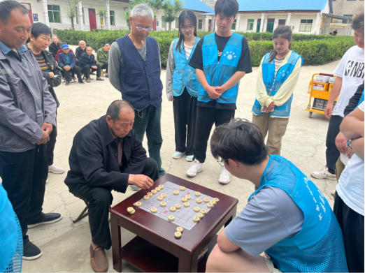 活动当天,身着统一蓝色志愿者服装的同学们来到敬老院,耐心陪伴在老人身边,倾听他们的故事。其中,擅长下象棋的志愿者与老人们进行了友好对弈,增添了活动的乐趣。爱好唱歌的同学们为老人们献唱了《奉献》,赢得了老人们的阵阵掌声。志愿者们还为老人们分发了水果、面包等慰问品。现场氛围融洽,充满了温馨与欢乐,老人们的脸上洋溢着幸福的笑容,敬老院负责人也对同学们的到来表示衷心感谢。